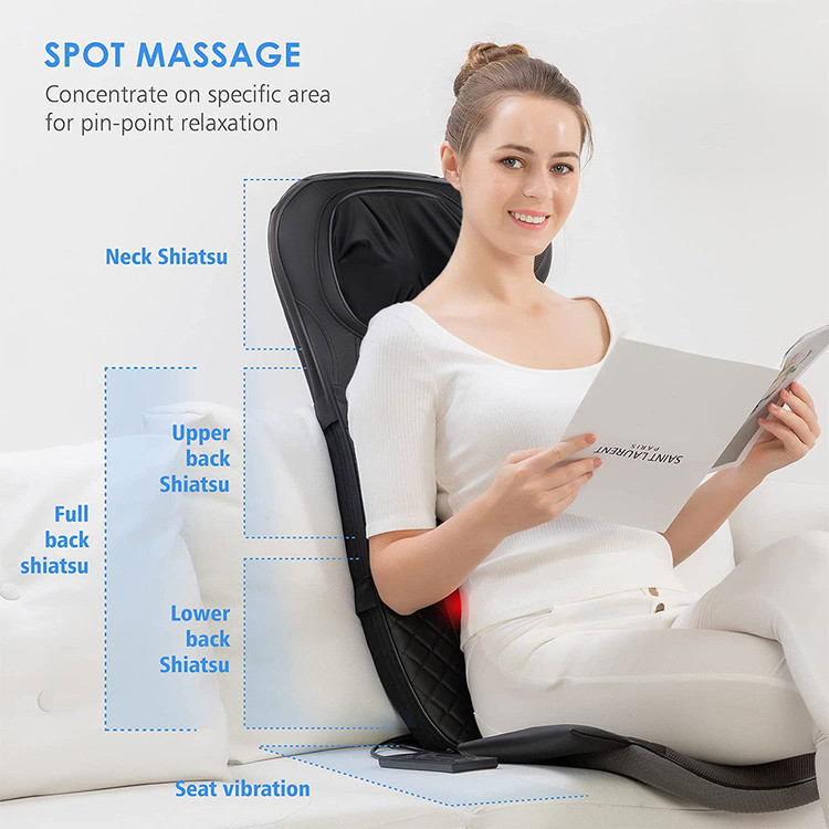 یک ماساژور که مخصوص شما سفارشی شده است، ماژول کمر با حرکات مالشی بالا و پایین میرود، شیاتسو انجام میدهد، برای کمر و کمر ضربه میزند و ماساژ سهبعدی را محقق میکند.
