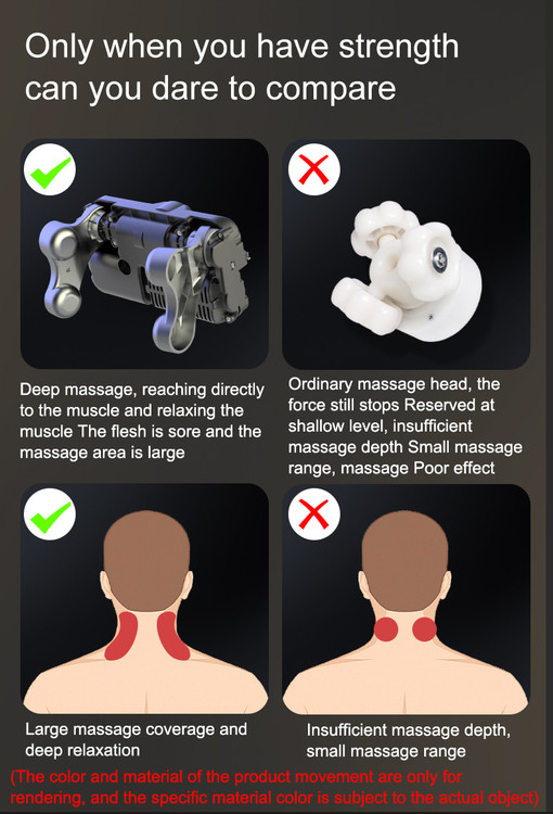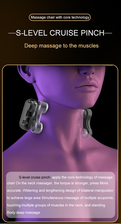 با ۳ حالت ماساژ تماسی، چرخشی مثبت و منفی برای ماساژ عضلات ذوزنقهای در دو طرف ستون فقرات گردنی، شل کردن عضلات سفت و اعمال گرما به ستون فقرات گردنی برای تسکین ناراحتی