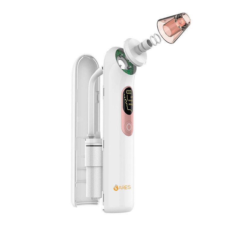 دستگاه از بین برنده جوشهای سرسیاه ARES uFashion با نور آبی. دستگاه جوش سرسیاه ARES uFashion برای از بین بردن جوشهای سرسیاه بدون درد طراحی شده است! این دستگاه با بهرهگیری از فناوری فشار منفی با پایداری بالا، آلودگیها را از عمق منافذ پوست بیرون میکشد، پوست را لیفت میکند و خطوط ریز را کاهش میدهد. به راحتی صورتی بدون لک و سفت داشته باشید!