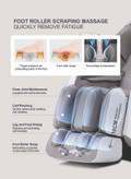 صندلی ماساژ uRoyal از ARES دارای طراحی منحصر به فرد کیسه هوای بلند است تا آرامش شما را به سطح بالاتری ببرد. این کیسههای هوا دور پاهای شما، از زانو تا کف پا، میپیچند و ماساژ فشردهای را ارائه میدهند که به بهبود گردش خون، کاهش تورم و رفع تنش ناشی از ایستادن یا نشستن طولانی مدت کمک میکند.